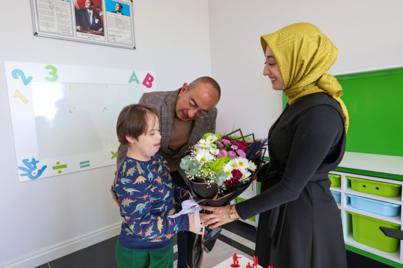 Öğretmenlere, günün anısına çiçek takdim eden Başkan Kavuş, sınıflarını ziyaret ettiği merkezde görev yapan öğretmenler, eğitimciler ve idarecilerin gününü kutladı. Öğretmenlerle bir süre sohbet eden Başkan Mustafa Kavuş, "Öğretmenlik, geleceğin teminatı olan çocuklarımızı ve gençlerimizi yetiştirmek için üstlenilen en kutsal görevlerden biridir. Ancak özel gereksinimli bireylerin eğitiminde görev alan öğretmenlerimizin gösterdiği emek, sabır ve sevgiyle herşey daha da anlam kazanıyor ve daha da değerli bir hal alıyor. Sizler sadece öğretmen değil aynı zamanda birer yaşam rehberisiniz" ifadelerini kullandı.