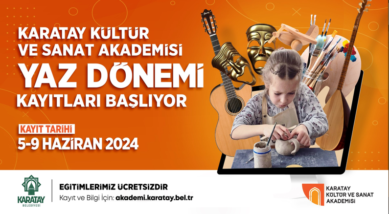 İlçede eğitim gören çocukların ve gençlerin öğrenme, üretme ile uygulama çabalarının yeni mekânı olma hedefiyle çocuklarda yeni beceriler ve araç kullanma kazandırmayı planlayan Karatay Kültür ve Sanat Akademisi’nde tamamlanan Bahar döneminin hemen ardından Yaz Dönemi için de kayıt dönemi başlıyor.