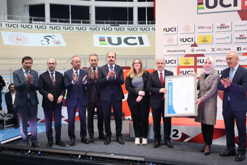 Törenin önemli anlarından biri de Uluslararası Bisiklet Birliği (UCI) tarafından Konya Olimpik Veledromu'na 10 yıllığına verilen akreditasyon sertifikasının protokole takdim edilmesi oldu.