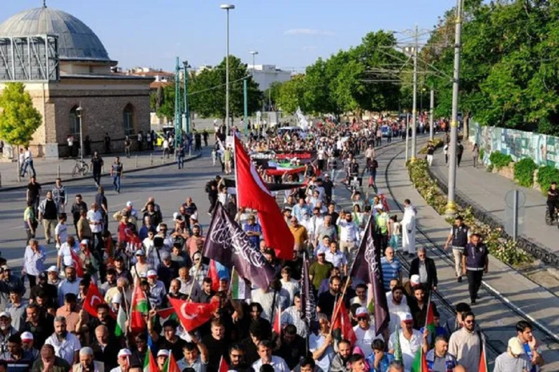 Konya’da, İsrail’in Gazze’ye yönelik saldırılarına karşı bir araya gelen sivil toplum kuruluşları (STK), “Küresel Vicdan Yürüyüşü” düzenledi. Binlerce Konyalı ellerinde Filistin bayrakları, dövizler ve sloganlarla İsrail'in saldırgan politikalarına tepki gösterirken, Filistin halkına desteklerini haykırdı.