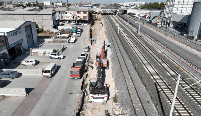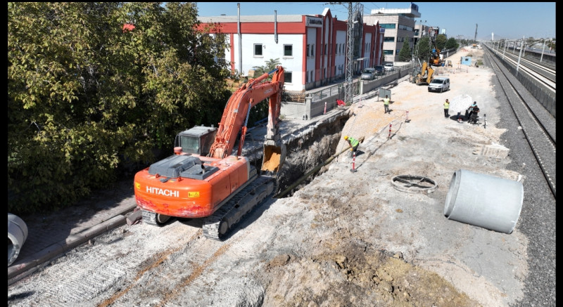 Konya Büyükşehir Belediyesi KOSKİ Genel Müdürlüğü, Konya Büyükşehir Belediyesi ile Ulaştırma ve Altyapı Bakanlığı iş birliğinde sürdürülen KONYARAY Banliyö Hattı çalışmaları kapsamında kanalizasyon şebekesini taşıyor.