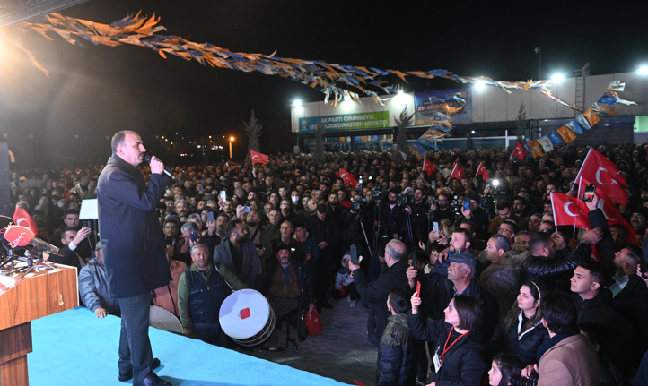 AK Parti Seçim Koordinasyon Merkezi önünde gerçekleştirilen ve miting havasında geçen programa binlerce Cihanbeylili ellerinde Türk bayraklarıyla katıldı.