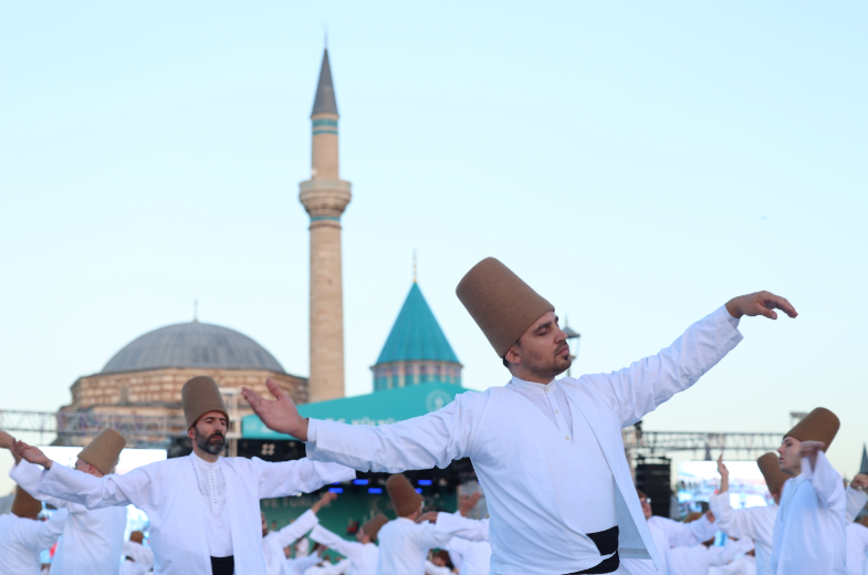 Programın sonunda ise Konya en özel günlerinden birini daha yaşadı. 250 semazenin aynı anda sema ayini şerifi icra ettiği programda manevi atmosfer yoğun şekilde hissedildi. Programı Konya’dan ve Konya dışından binlerce vatandaş ilgiyle takip etti.