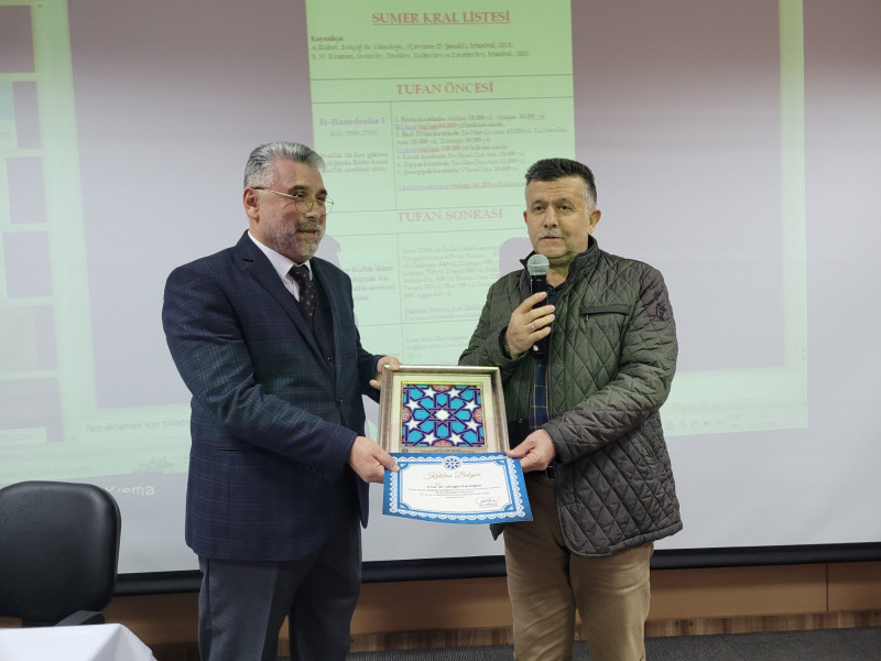 Program sonunda Selçuklu çini plaket ve katılım beratlarını TYB Konya Şubesi Başkan Yardımcısı Prof. Dr. Ahmet Çaycı ve Doç. Dr. Ahmet Akman takdim etti.
