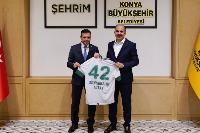 Ziyaret sonrası Konyaspor Kulübü Başkanı Fatih Özgökçen, Uğur İbrahim Altay ve 42 numara yazılı yeni sezon formasını Başkan Altay'a hediye etti.