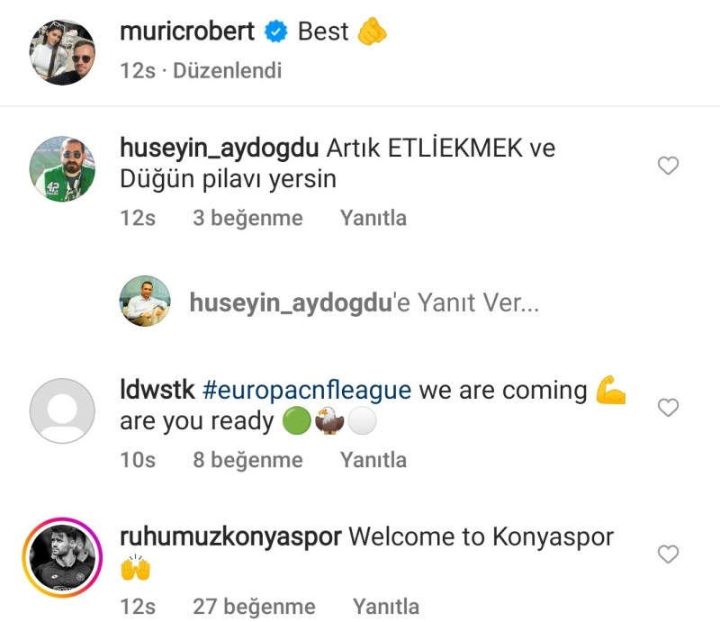 Muric, transferinde sosyal medyada büyük bir atak yapan ve Hırvat futbolcuyu ikna etmeye çalışan yeşil-beyazlı taraftarlar, Robert Muric’e büyük baskı yapıyor. Muric’in sosyal medya hesabına binlerce yorum bırakan Konyaspor taraftarları, yıldız futbolcunun fotoğraflarına "Come to Konyaspor" (Konyaspor’a gel) mesajı yazdı. Deneyimli futbolcu Muric’in ise, yapılan bazı yorumları beğendiği görüldü.