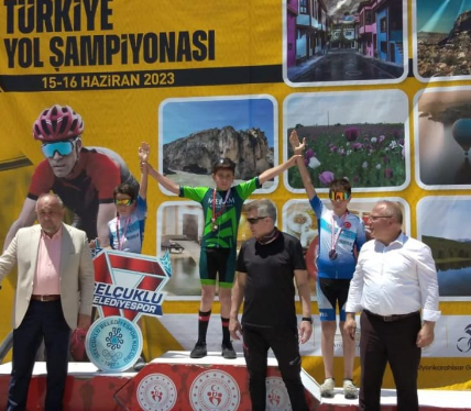 Meram Belediyespor kulübü sporcularından Muhammet Ahmet Yüce, Türkiye Bisiklet Federasyonunun faaliyet programında yer alan ‘Türkiye Yol Şampiyonası’ndan iki birincilikle döndü. 15-16 Haziran tarihlerinde yapılan yarışlarda Yüce ilk gün gerçekleştirilen zamana karşı yarışta Minikler Kategorisinde en iyi zamanı yakalayarak ‘Zamana Karşı Türkiye Şampiyonu’ oldu. Yüce, 16 Haziran günü gerçekleştirilen ‘Yol Yarışları’nda ise tüm zorlu rakiplerini tekrar geçerek ‘2023 yılı Yol Şampiyonu’ olmayı başardı.