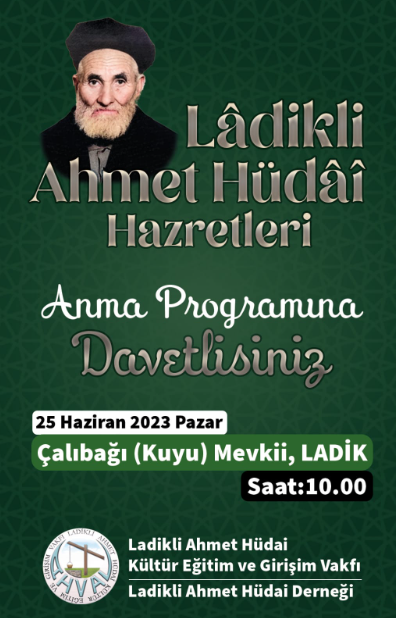 Ladikli Ahmet Hüdai Kültür Eğitim ve Girişim Vakfı Başkanı Mevlut Hilmi ayrıca vakfın kuruluş amacını ve pazar günü yapılacak programın içeriğini şu şekilde açıkladı:''Hem Ahmed Ağamızın adını yaşatmak,hem topluma örnek bireyler yetiştirmek ve kaybolmaya yüz tutan safi din anlayışını,vatan anlayışını, aile ve toplum anlayışını özellikle gençlerin ,tüm bu değerlerden uzaklaşmadan yaşamalarını sağlamak amacı ile Ladikli Ahmet Hüdai Kültür Eğitim ve Girişim Vakfını kurduk.Vakfımızn maddi ve manevi anlamda güzel faaliyetler yapacağiına inancımız tamdır.Ladikli Ahmet Hüdai Hazretlerini Anma programımız 25 Haziran 2023 Pazar günü Ladik-Çalıbağ(Kuyu )Mevkiinde saat: 10.00’da düzenlenen törenle başlayacaktır. Düzenlenen anma töreninde bir dizi etkinlikler, İlahiler ve dualarla ,Ladikli Ahmet Hüdai Hazretlerini anmaya ve anlamaya çalışacağız. Programımıza katılan misafirlerimize yemek ikramımız olacaktır. Ladikli Ahmed Hüdai Hz. Anma Programımıza tüm Konya, Türkiye ve Dünya dan Ahmet Ağa sevenlerini davet ediyoruz.”